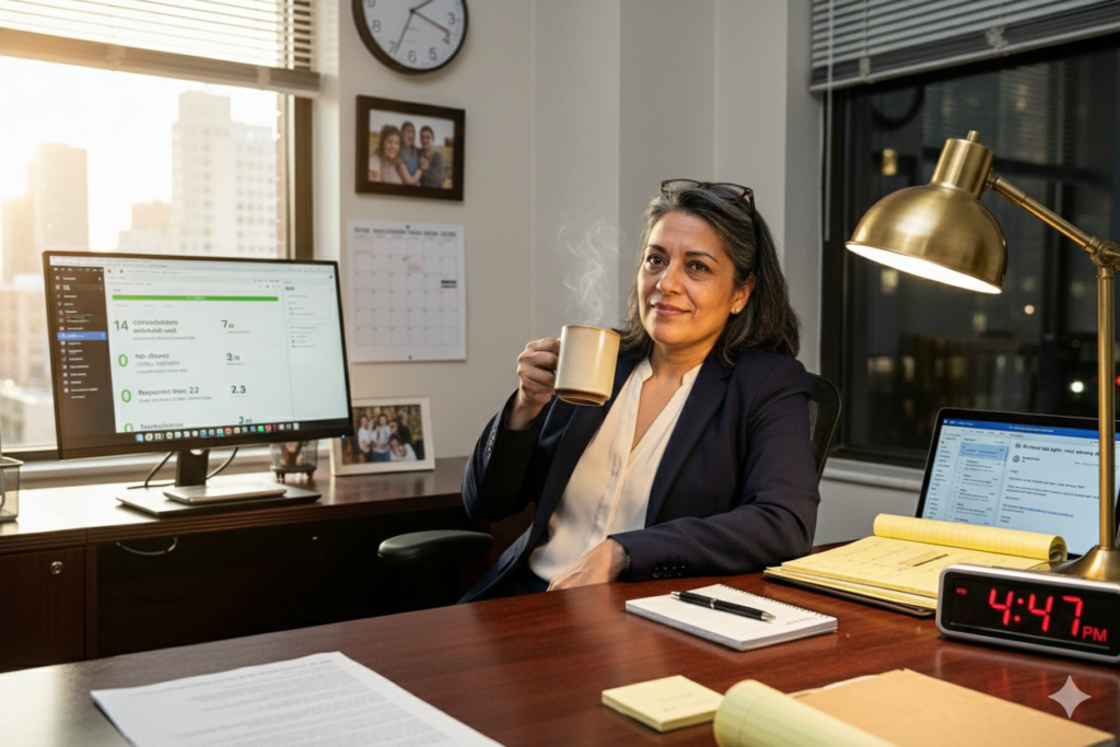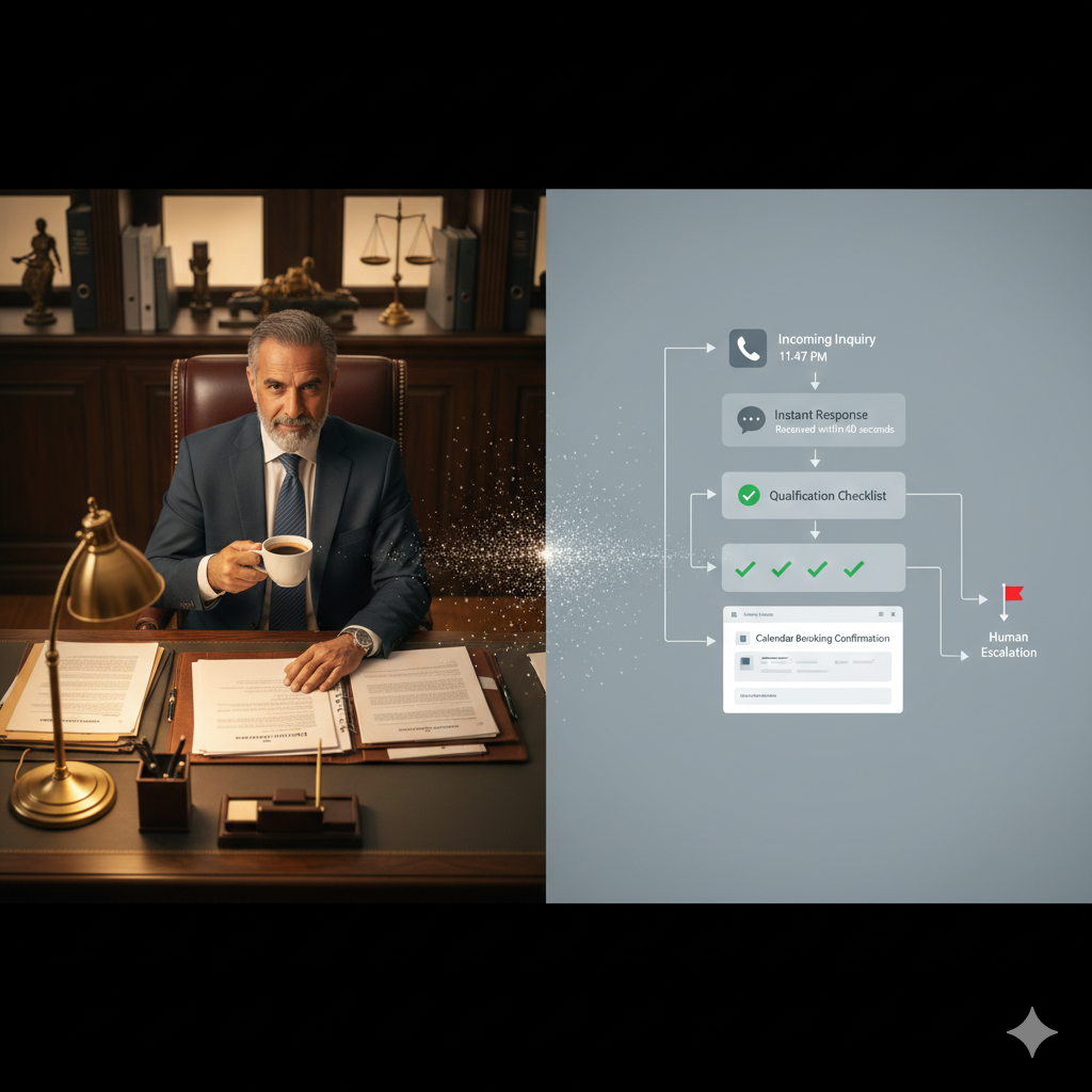 You close this page. Next month looks identical to this month. Same missed opportunities during court appearances. Same delayed responses that lose deals to faster firms. Same no-shows eating up calendar slots. Same administrative burden keeping you from billable work.
