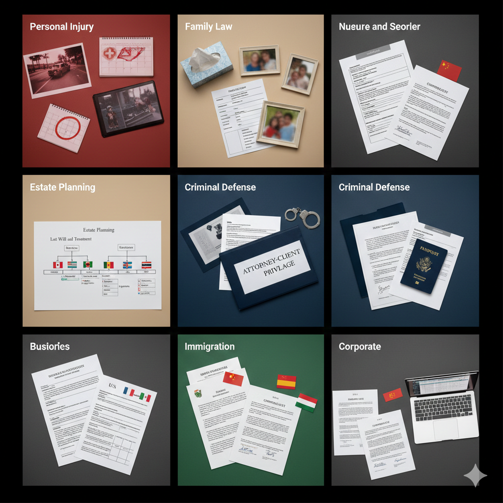 Immigration: Multi-language support. Complex documentation requirements. Visa category screening. Case type qualification before consultation.